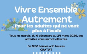 Tous les lundis et jeudis de 10 h à 15 h. Les activités de jour proposées sont spécifiquement conçues pour répondre aux besoins des individus ayant des limitations physiques et intellectuelles.